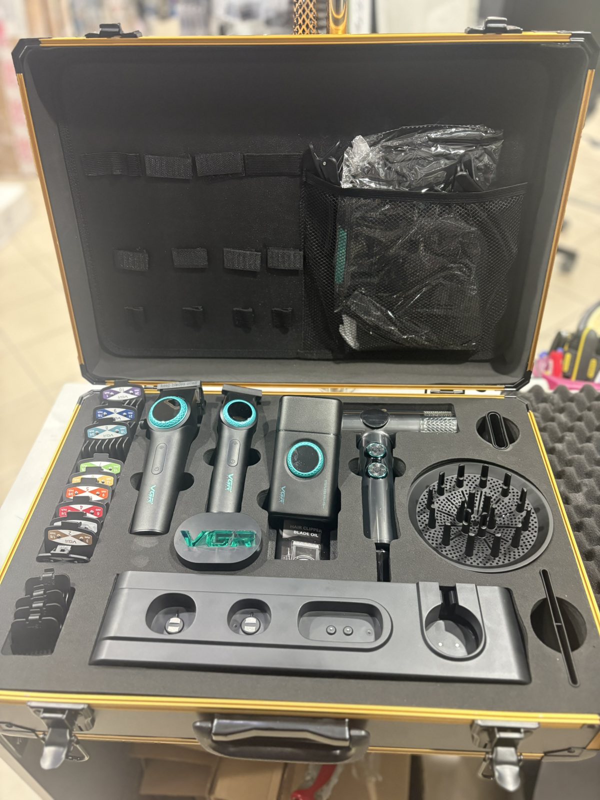 Επιπλέον, το σετ περιλαμβάνει λάδι μεγαλο, κλιπ μαλλιών και βούρτσα καθαρισμού fade.και 2 αντιολισθητικα λαστιχα για τις μηχανες