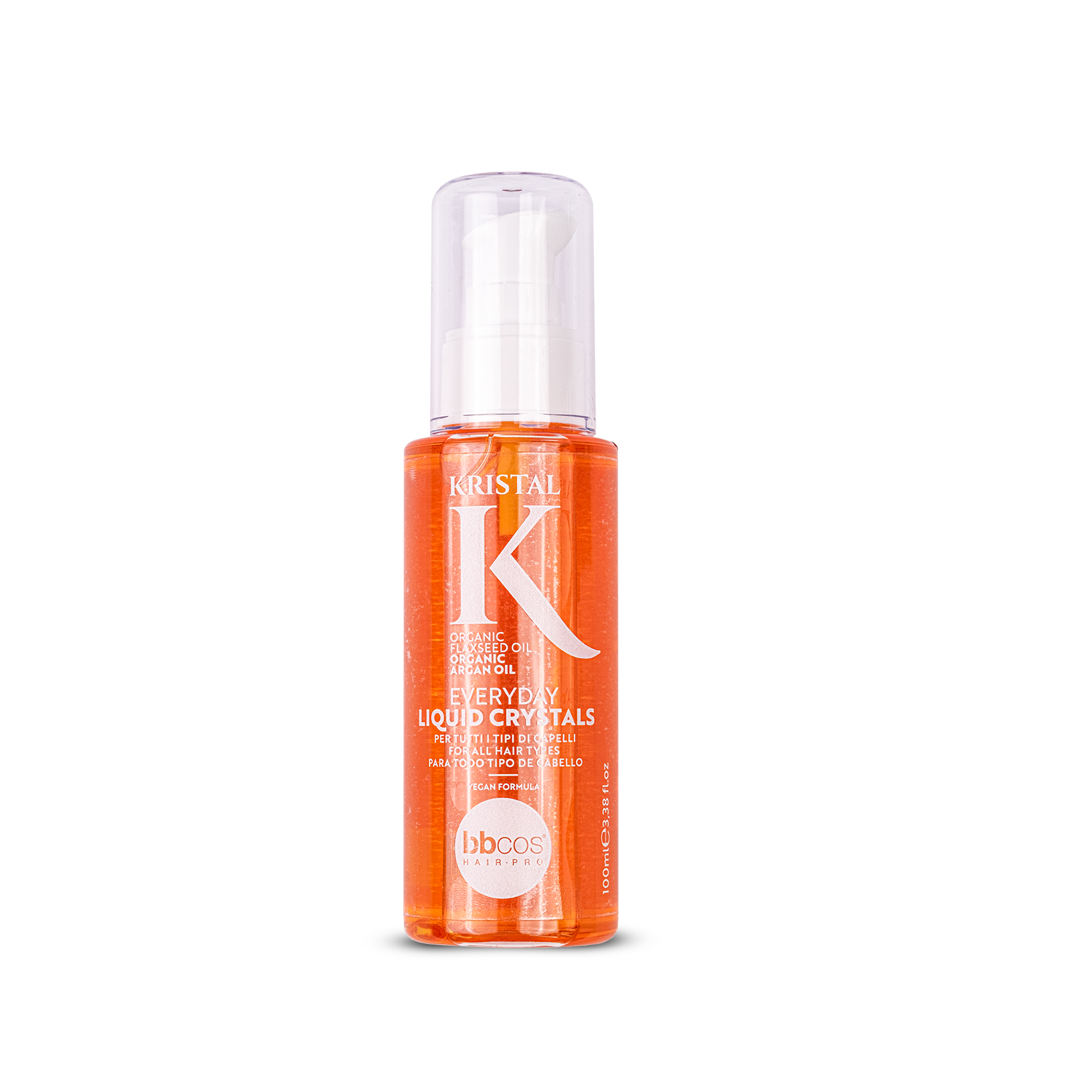 Βάλτε μικρή ποσότητα από το μετάξι liquid crystals Kristal Basic BBCos στις παλάμες, τρίψτε μεταξύ τους κι απλώστε κατά μήκος του μαλλιού.